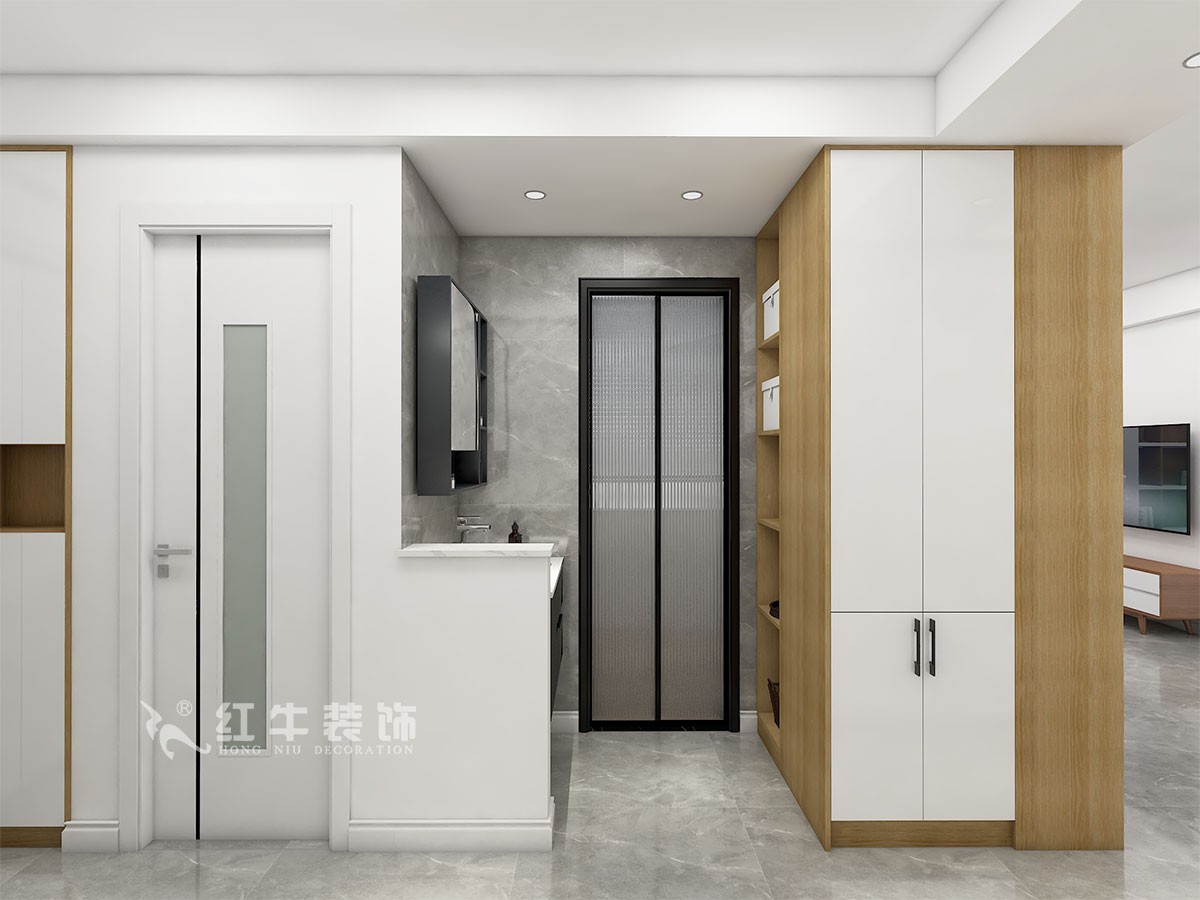 本案設(shè)計(jì)業(yè)主小夫妻,帶小孩居住,顏色原木色加白色柜門,整體簡約明亮,給人以溫暖安心的感覺。衛(wèi)生間的結(jié)構(gòu)改動(dòng),解決了干濕分離的問題。主臥門洞改方向,解決了電視背景墻狹窄的問題。